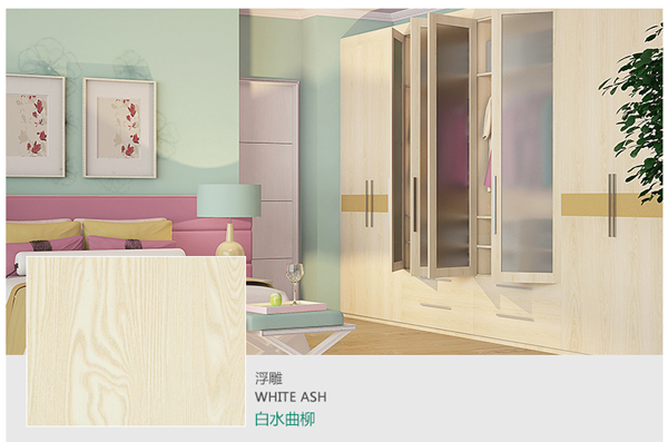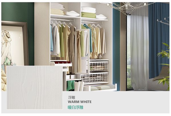 3、板材貼面看質量有些衣柜,表面看還不錯,然而,用指甲輕輕一劃,就能劃出明顯的劃痕。這些定制衣柜選用的是市場上低價衣柜經常使用的表面貼保麗紙、華麗紙板材,耐磨性較差。專業定制衣柜廠家使用的一般是浸漆厚度較厚且經高溫高壓處理的環保三聚氰胺貼面板,表面強度高,耐磨耐劃傷。